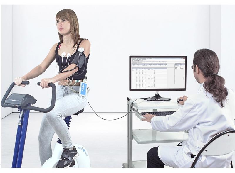 Стресс-система профессионального уровня, оснащенная велоэргометром и беспроводным электрокардиографом.