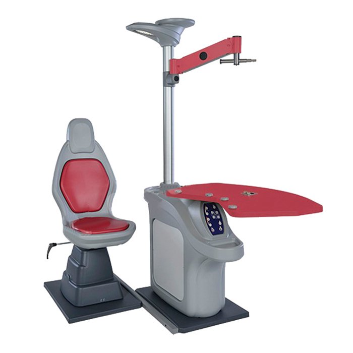 Рефракционный стенд состоит из: основания, штатива с лампой, рабочего стола на два прибора, цифровой контрольной панели, места ручного инструмента, места проектора знаков, кронштейна под фороптор (опция), автоматически регулируемого кресла пациента (может комплектоваться различными моделями кресел).
